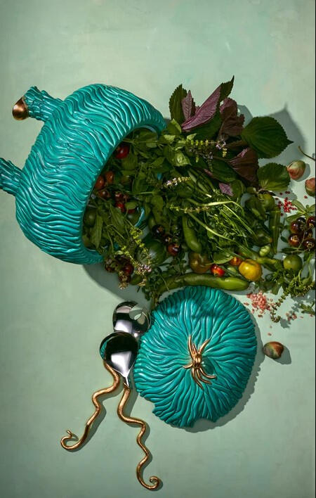With the heftiness of the Grat,the vines are first separated and thrown on a grill, seasoned with a sweet soy and ginger marinade. The body is then coated in the same marinade and roasted into the center is cooked and the leaves are crispy and curled.
